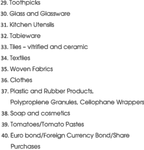 The Vice President, while addressing a gathering on Tuesday, had said the government would consider the option in order to promote the local manufacturing of 41 items such as rice and toothpicks.