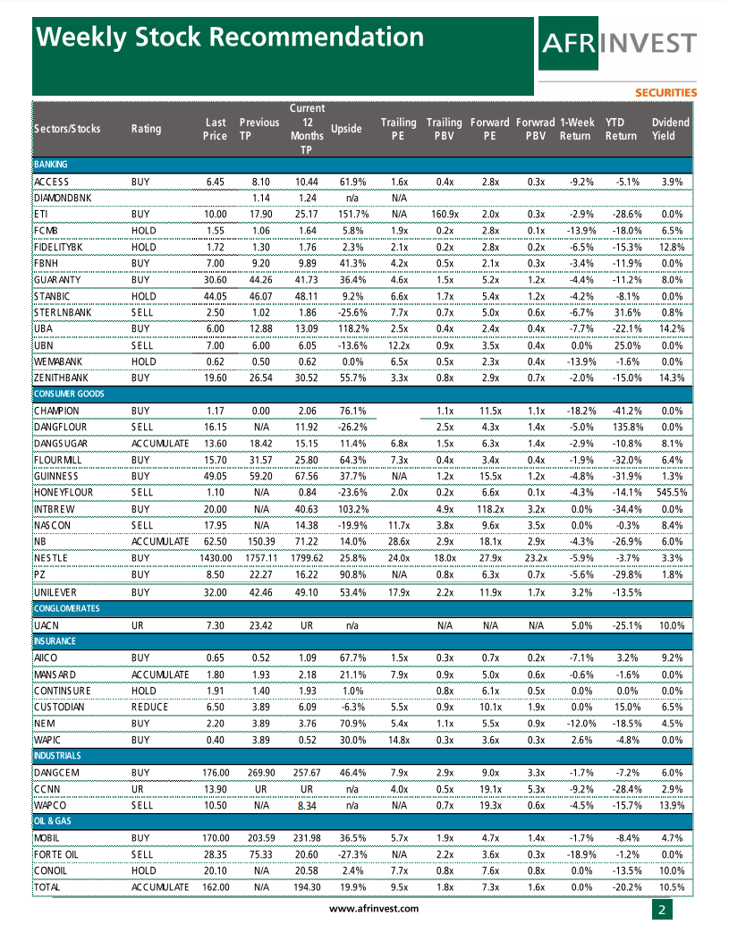 Below is weekly stock recommendation from Afrinvest Research